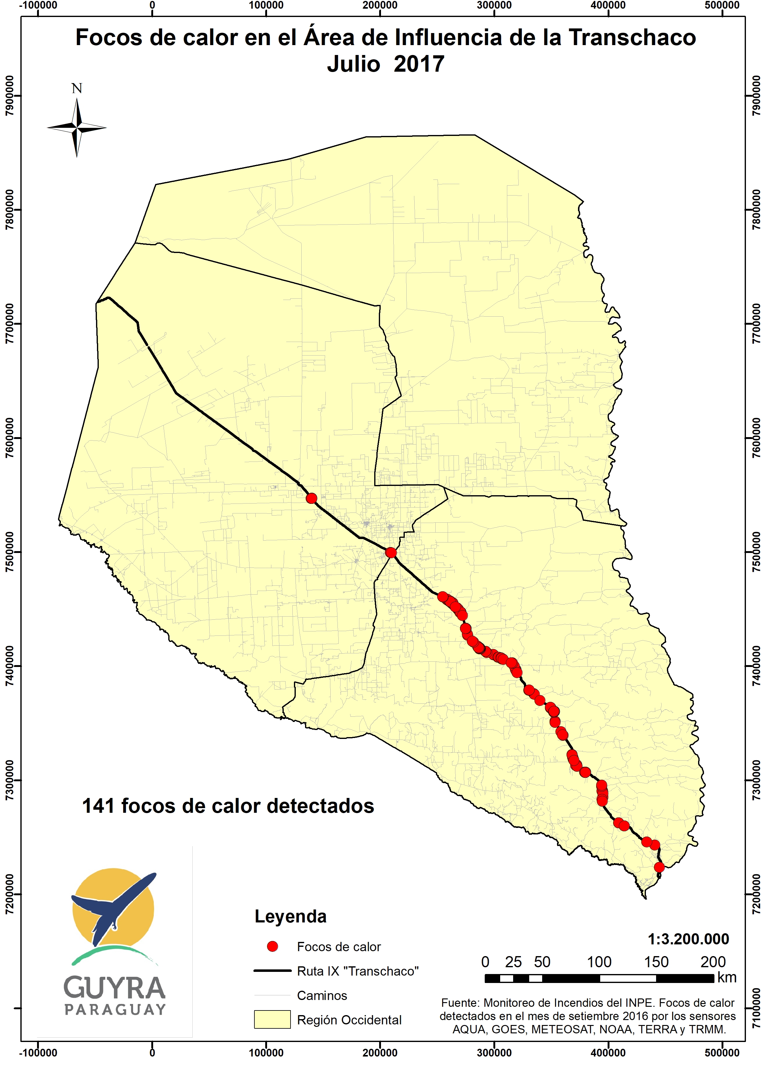 La Ruta Transchaco y los incendios. Con la llegada de la temporada de sequía en el país, surge un grupo de factores meteorológicos y sociales que favorecen la aparición de incendios en el área rural. Este año, las heladas ocurridas en el mes de julio han aumentado el riesgo de incendios en varias partes del país. Esto se pudo observar a lo largo de la Ruta Nacional N° 9 “Dr. Carlos Antonio López”, más conocida como la Ruta Transchaco, donde en todo el mes de julio se detectaron 141 focos de calor en el área de influencia de esta ruta. Estos incendios fueron provocados de forma accidental o intencionalmente debido a ciertas acciones o prácticas como la quema no controlada de pastizales (Sancionada por la Ley 4014/10) y la mala disposición de las coletas de cigarrillos, entre otros. Apelamos a la conciencia de los habitantes de la región y las personas que se movilizan por estas rutas. Más información con Edder Ortiz (geo-ortiz@guyra.org.py).